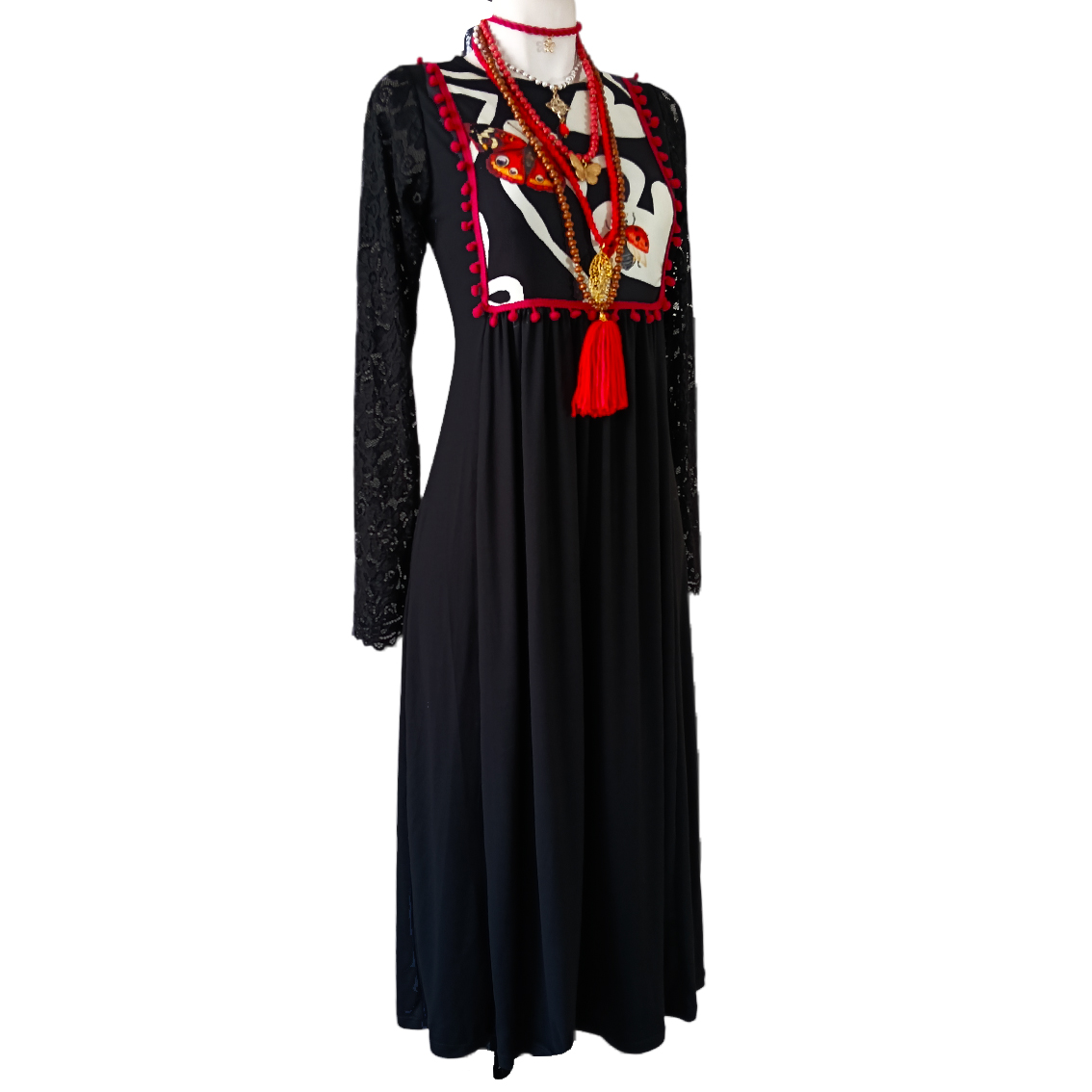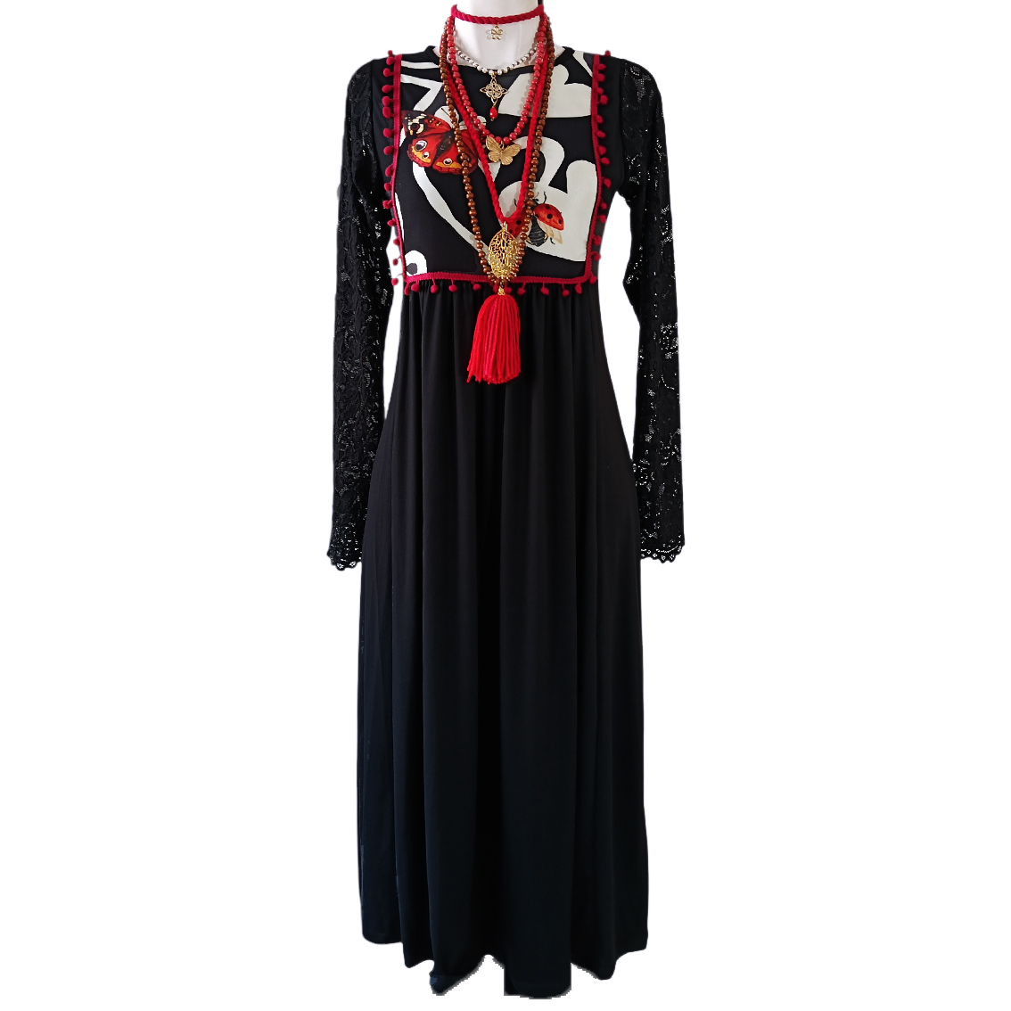 Mangas largas de encaje.