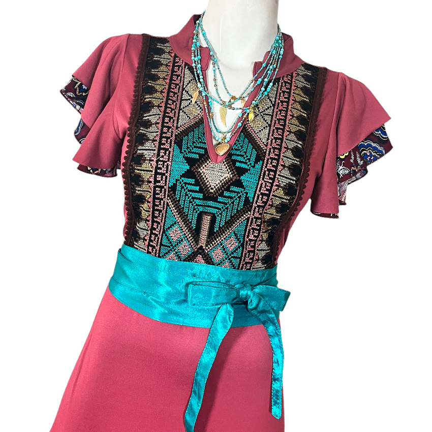 Vestido Toscana Olanes mauve bord flores