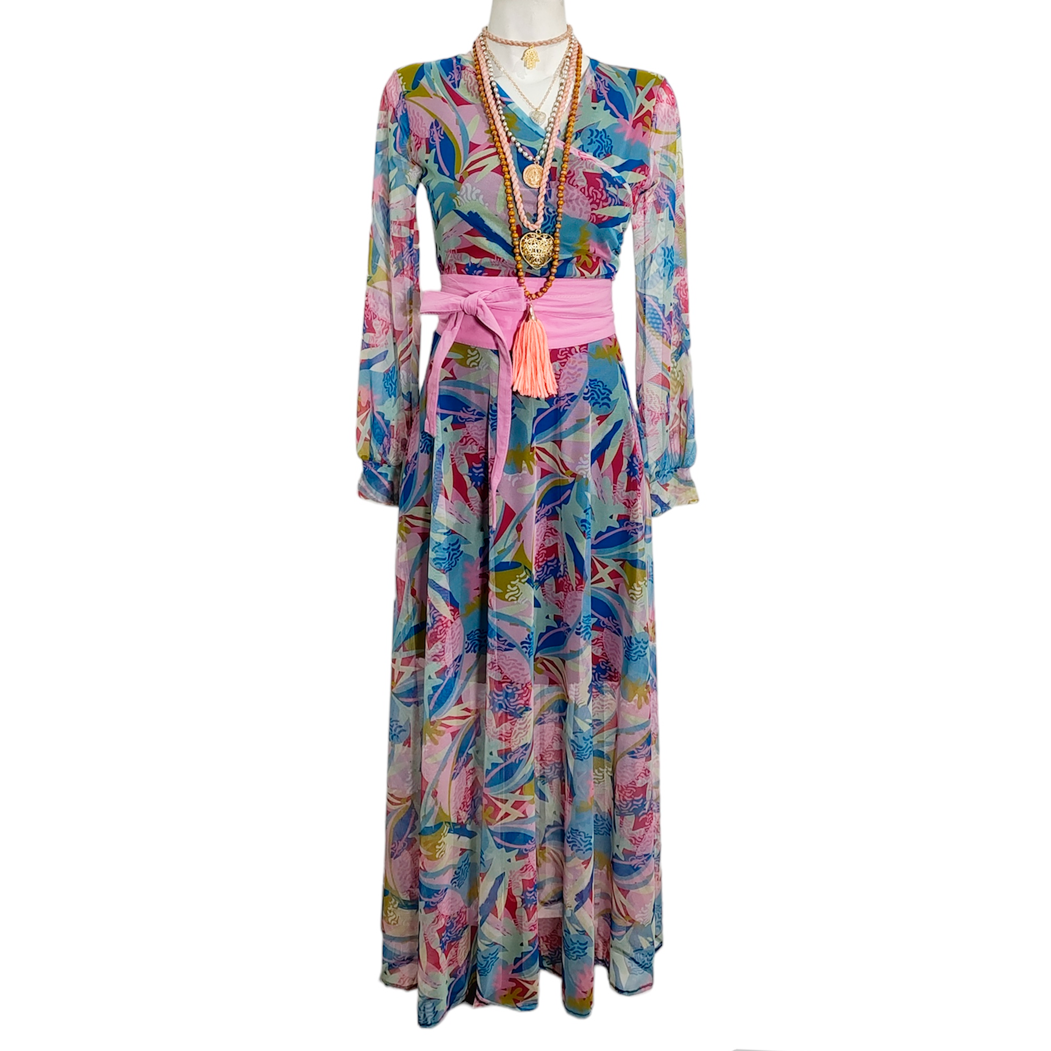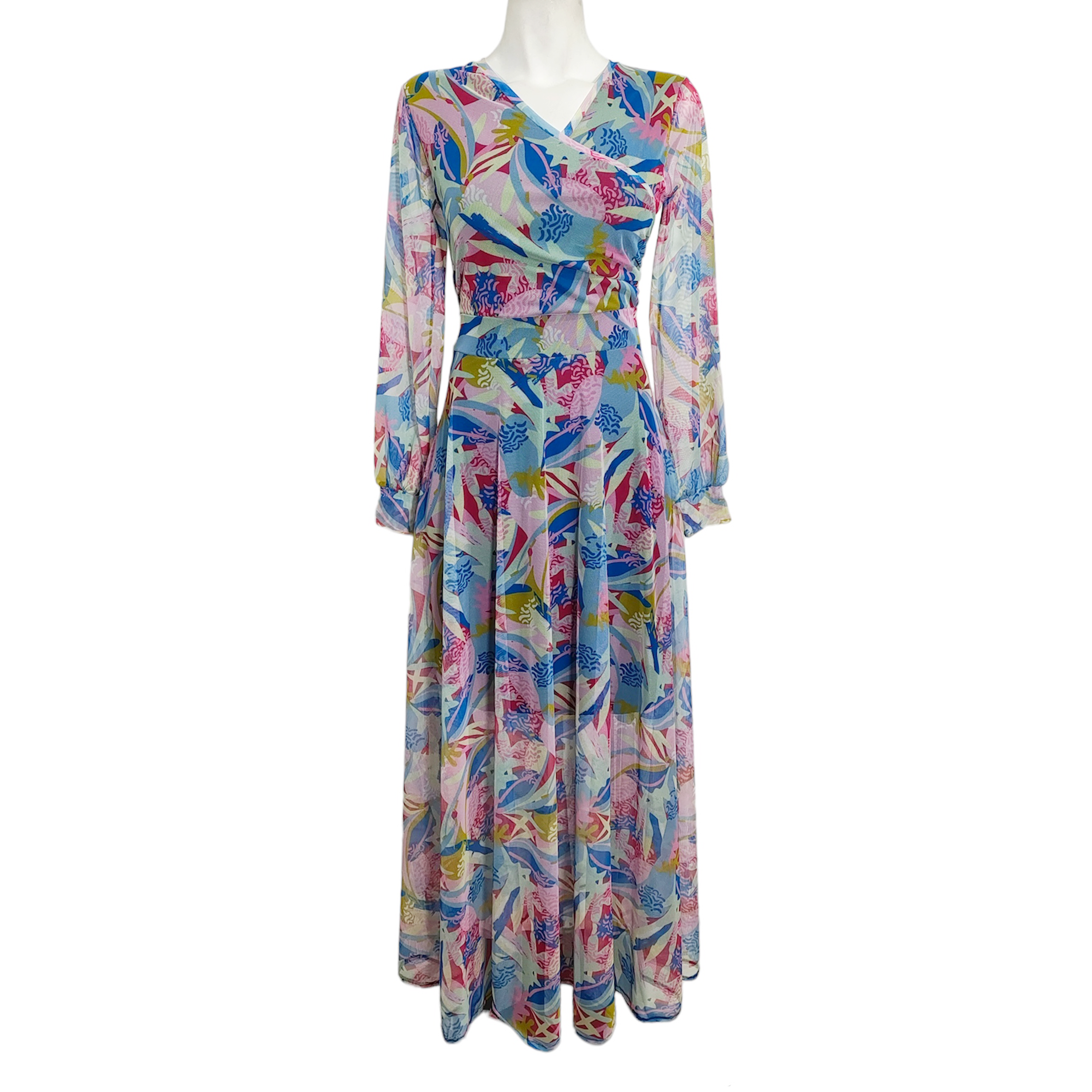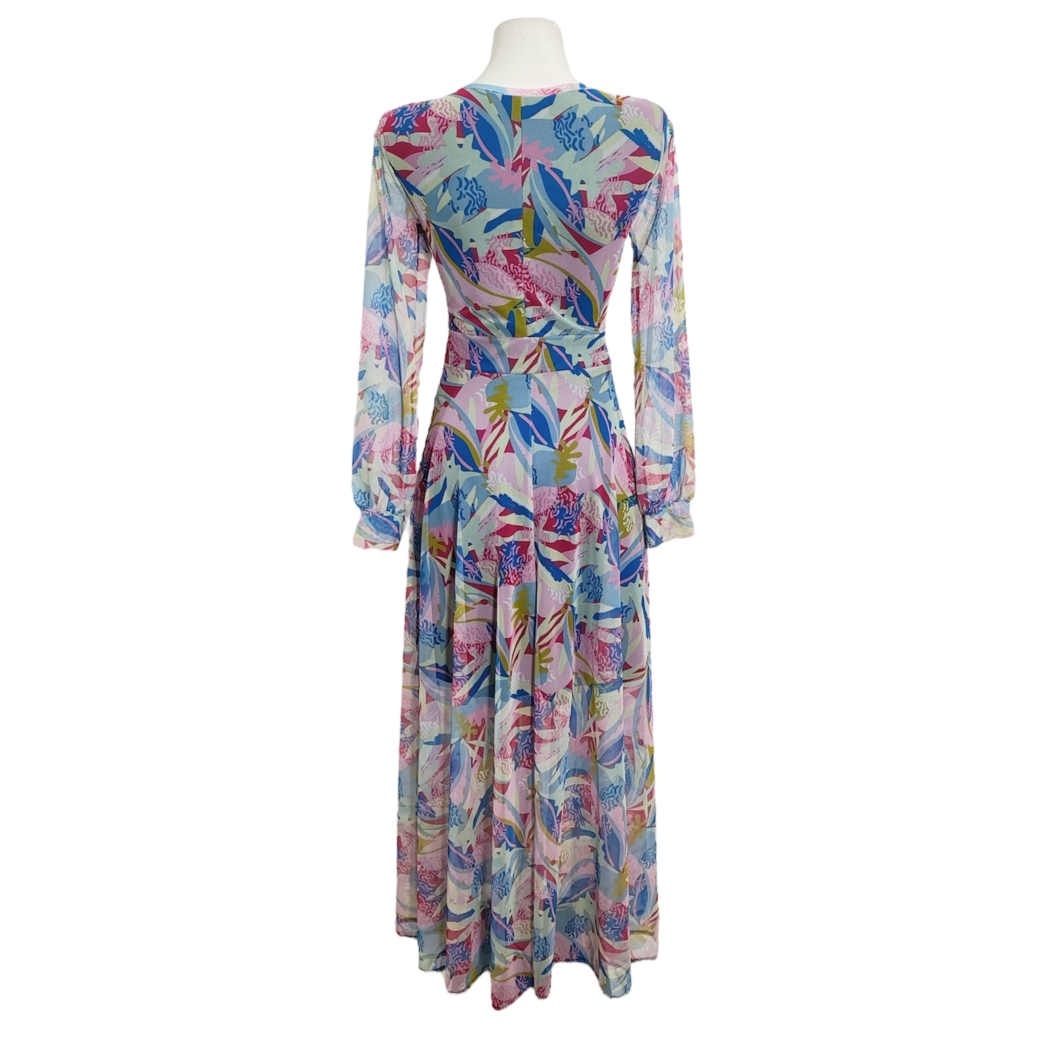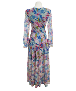Vestido Tua largo mesh rosa azul