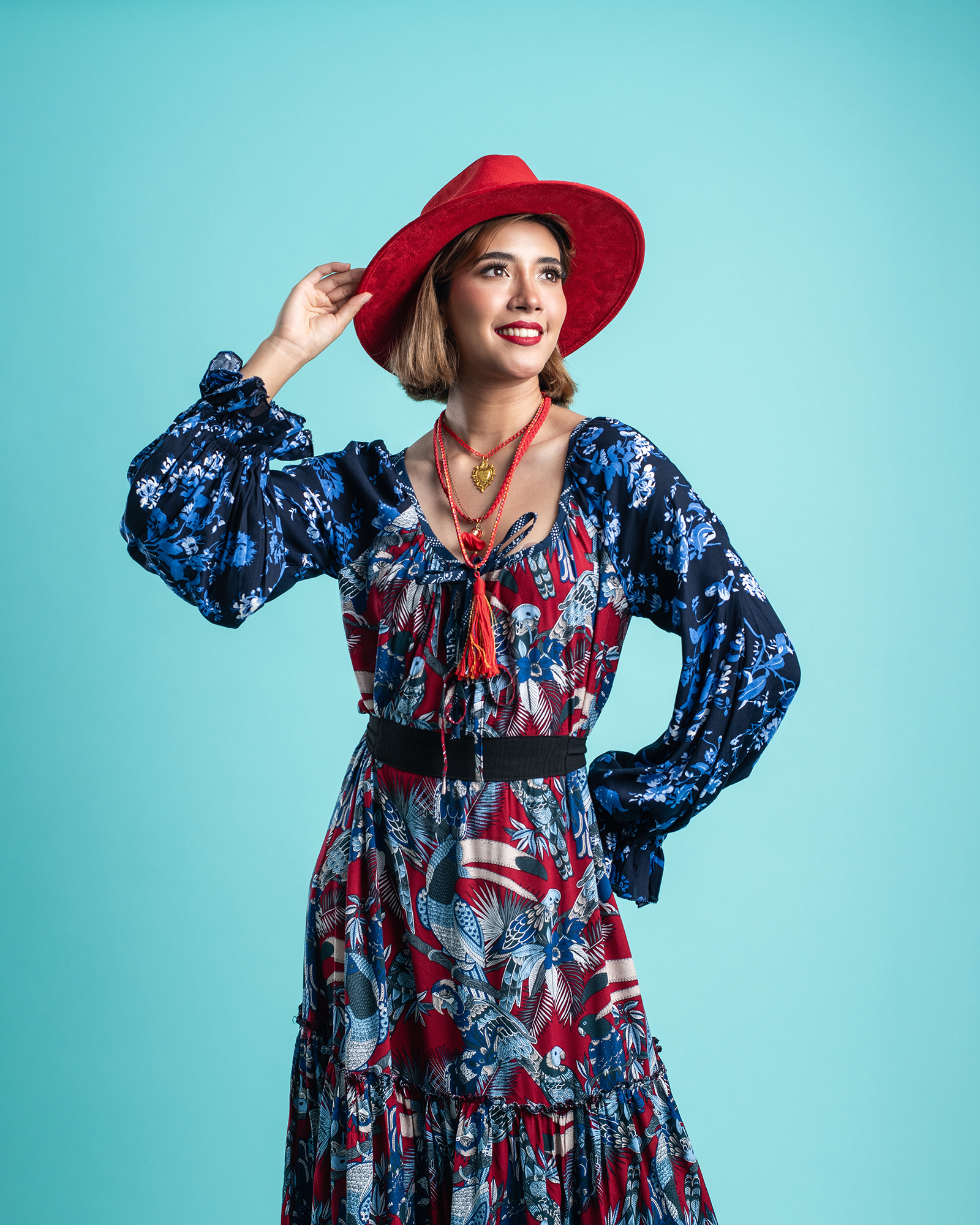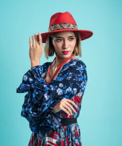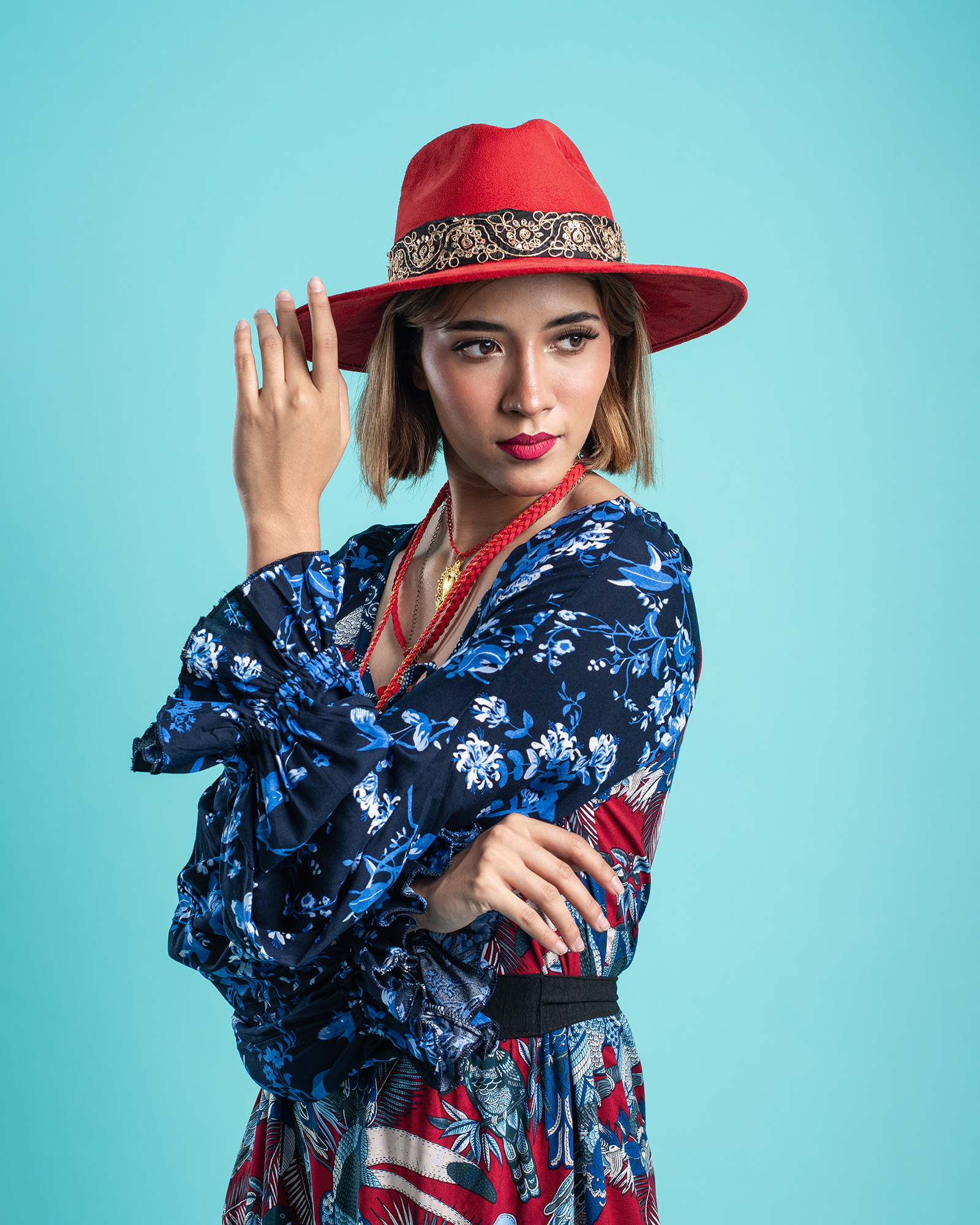Color azul y rojo.