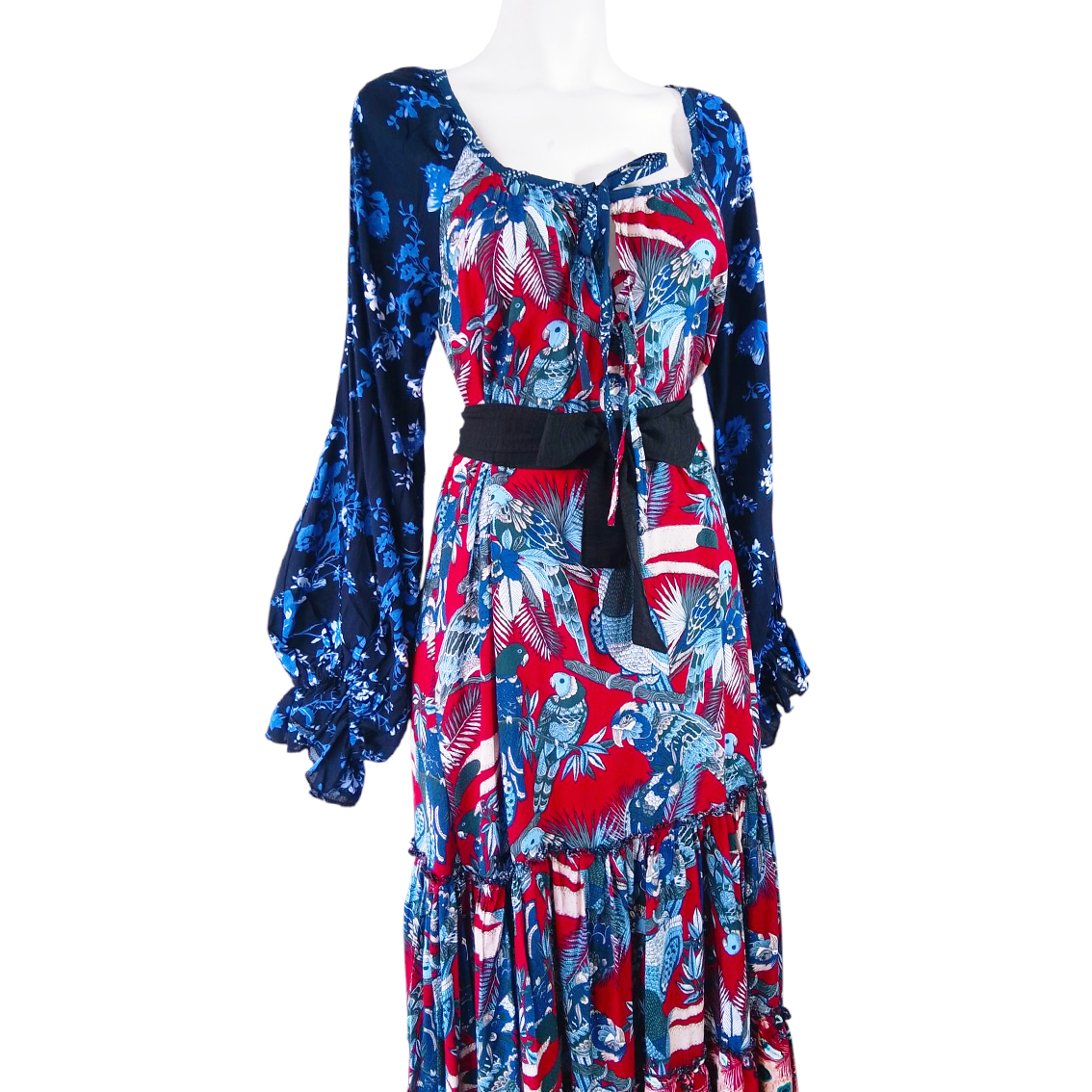 Estampado flores diversas y aves.