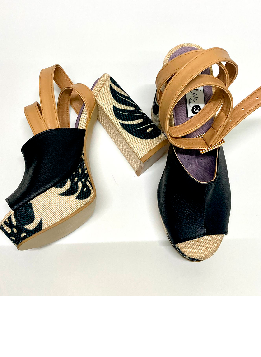 Color negro con estampado de hojas en negro sobre color hueso
